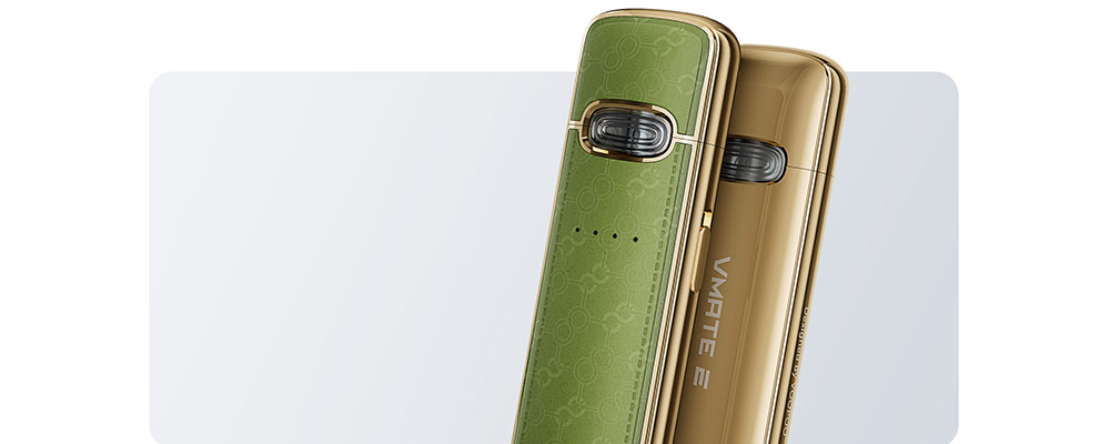 VMATE E выглядит как произведение искуства. Корпус устройства выполнен из качественного полированного метала и украшен экокожей. Гладкий металл и рельефная кожа тактильно приятны и производят впечатление качественного и дорогого устройства. Необычный внешний вид VMATE E поможет вам выделиться и подчеркнуть индивидуальность. Картридж вейпа закрывается съемным колпачком, защищающим его от пыли и препятствующим попаданию на картридж солнечного света и взаимодействию жидкости с воздухом, что позволяет сохранить ее первоначальный вкус и насыщенность.
